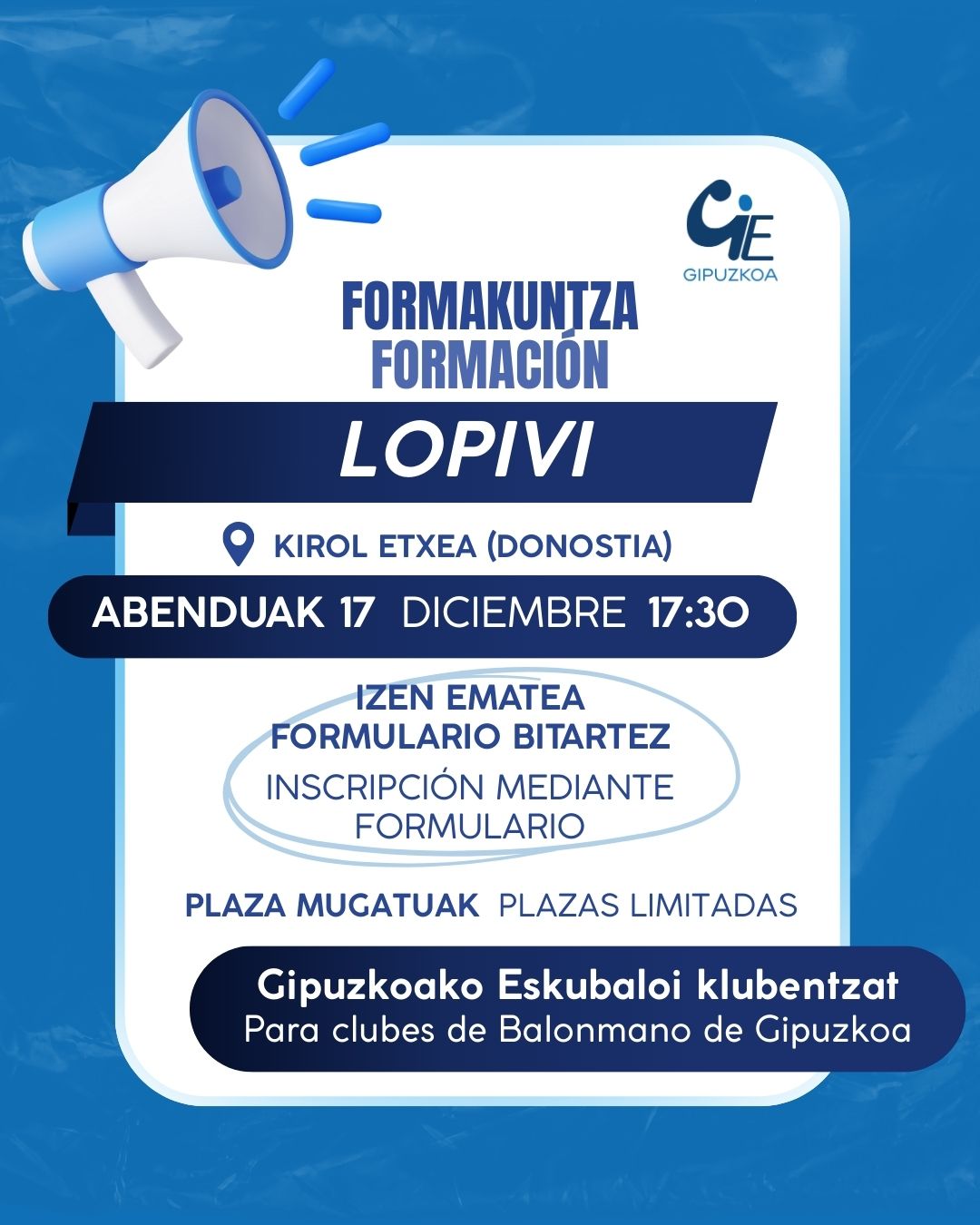 17 de diciembre formación LOPIVI en Kirol Etxea Inscripción mediante formulario